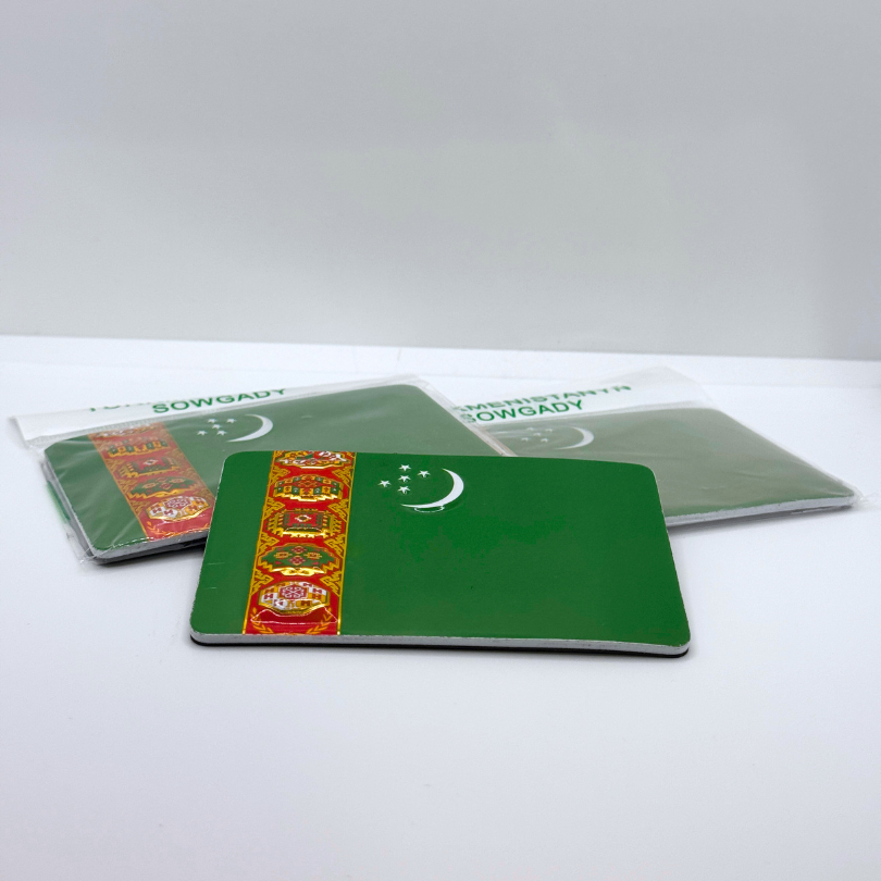 Aggiungi un tocco di Asia Centrale alla tua collezione con questo magnete raffigurante la bandiera del Turkmenistan. Compatto e colorato, è perfetto per decorare il frigorifero o una lavagna magnetica. Ideale per collezionisti, amanti dei viaggi o chi desidera portare con sé un ricordo dei Paesi lungo la Via della Seta.