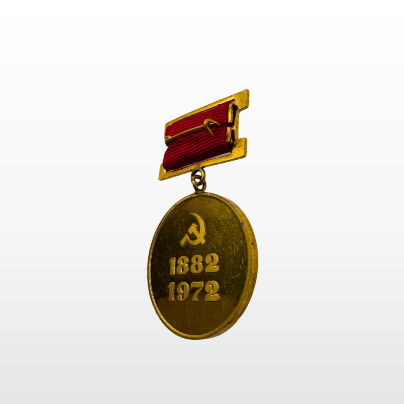 Spilla "90esimo Anniversario dalla Nascita di Georgi Dimitrov" - spilla che celebra il politico più influente della Bulgaria del 1900, che ha ricoperto il ruolo di Segretario Generale del Partito Comunista.