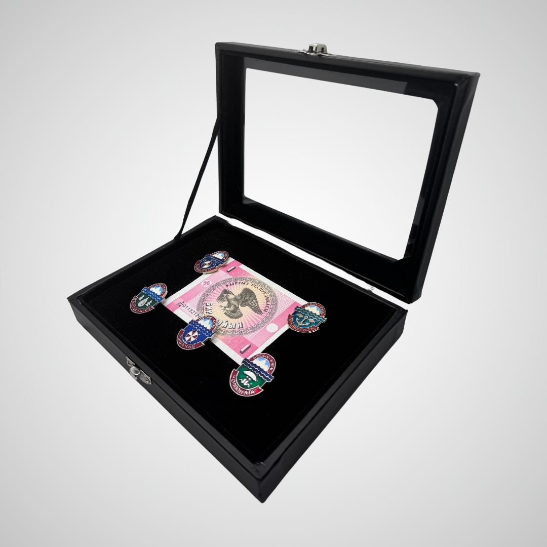 Il set esclusivo "Leggendario Lago Issyk-Kul": un omaggio all'iconico lago del Kirghizistan. Perfette per gli amanti di luoghi remoti e del fascino post-sovietico. Il kit include una banconota originale, 5 spille iconiche e 2 magneti decorativi, tutti ispirati al patrimonio culturale e allo stile sovietico. Include la dedica di Dave Legenda.